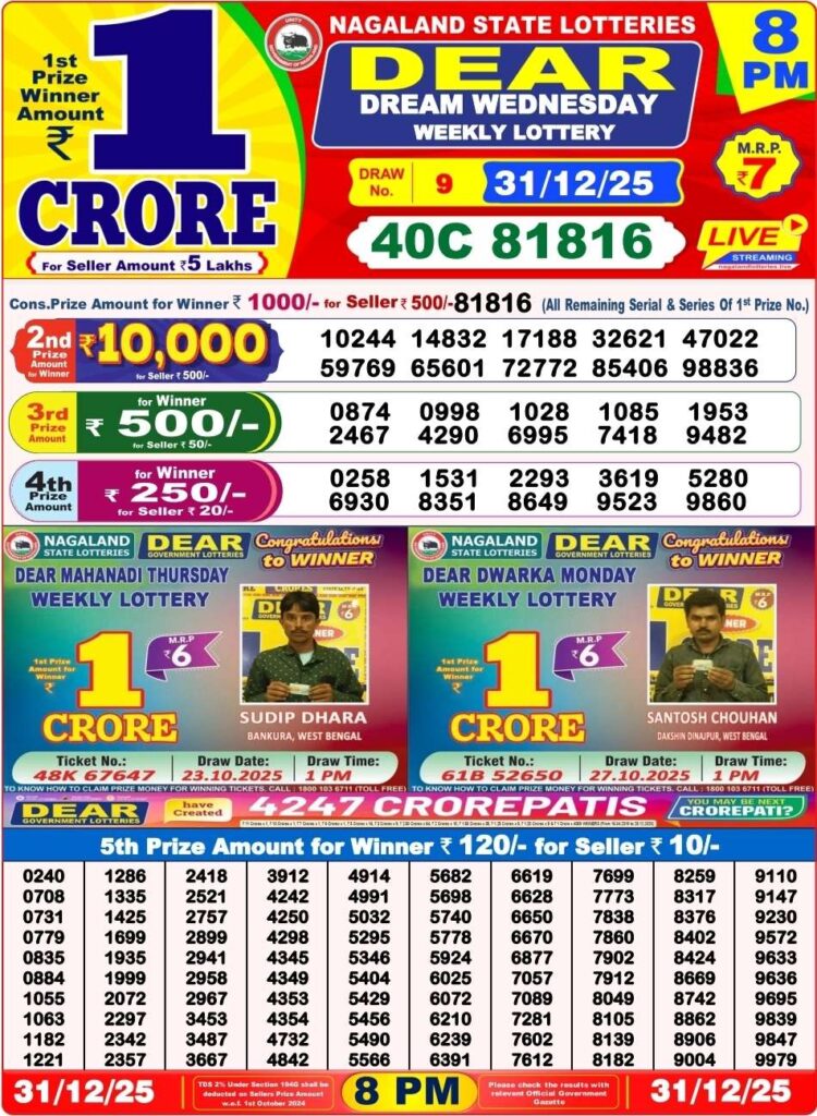 Lottery sambad Dhankesari Nagaland state lottery Sikkim state lottery West bengal state lottery Bodoland lottery result Khanpara lottery result Shillong Teer result Juwai Teer Assam Teer Result