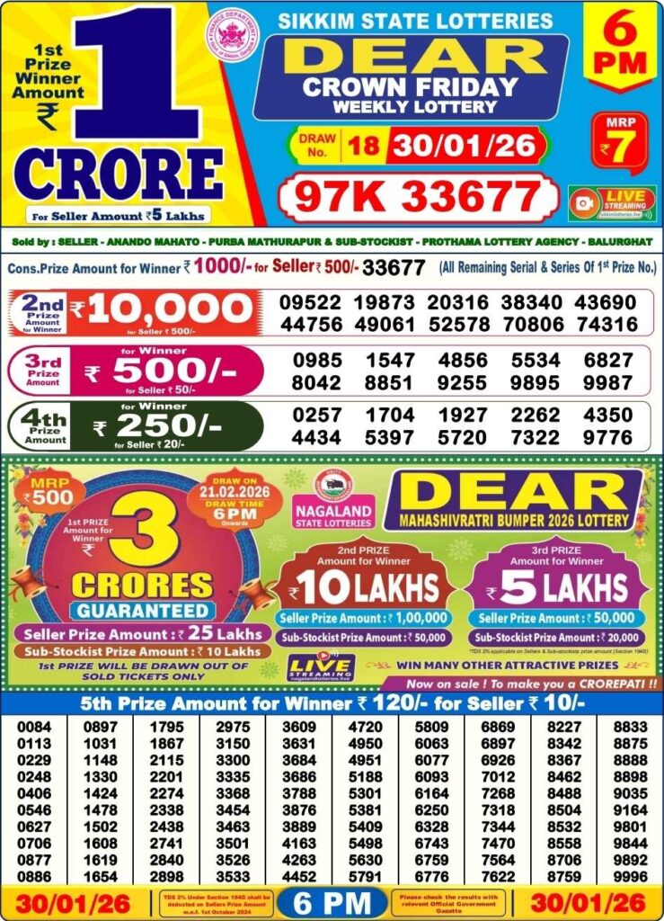 Lottery sambad Dhankesari Nagaland state lottery Sikkim state lottery West bengal state lottery Bodoland lottery result Khanpara lottery result Shillong Teer result Juwai Teer Assam Teer Result