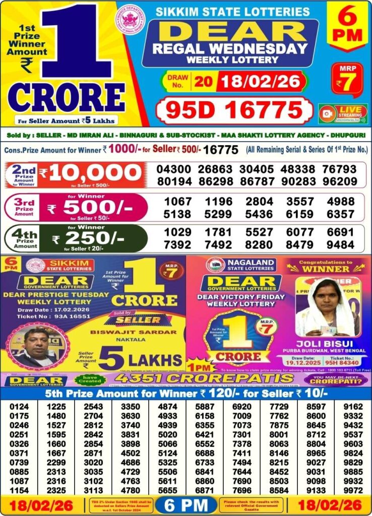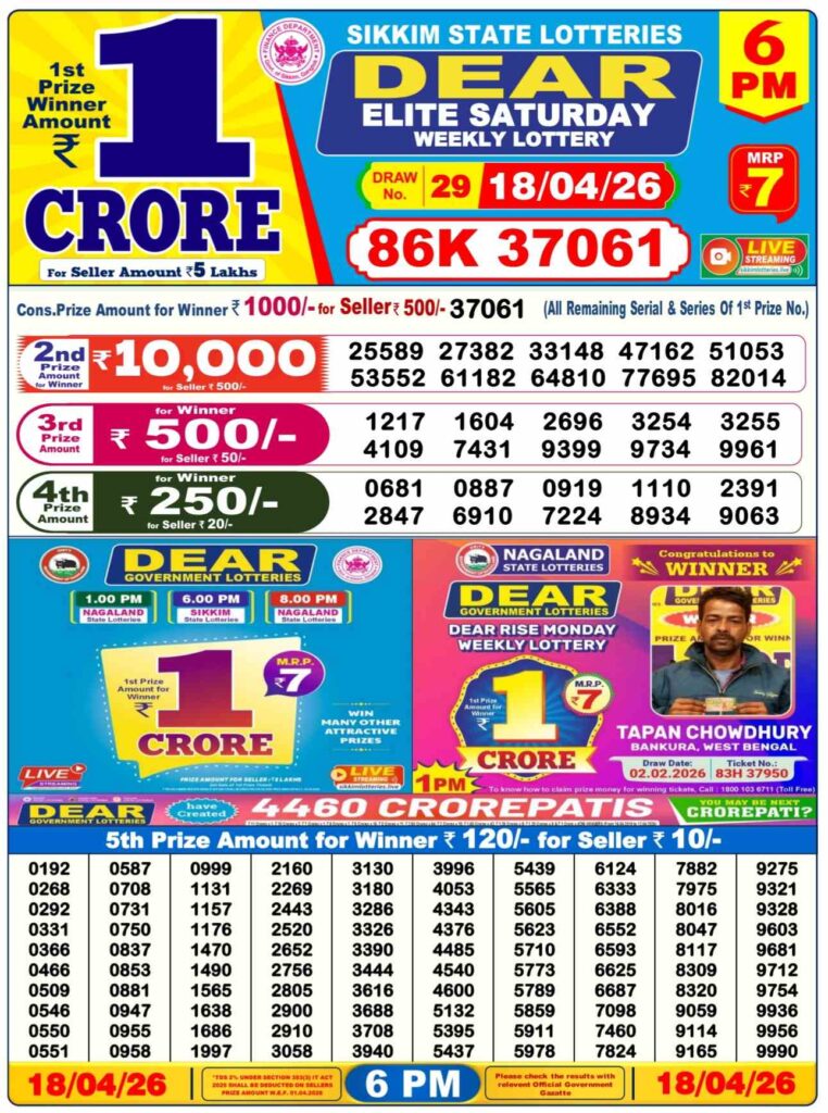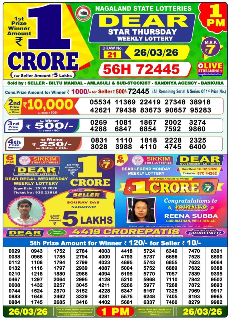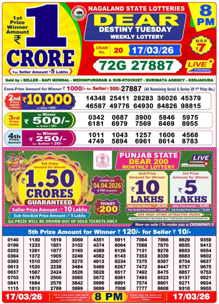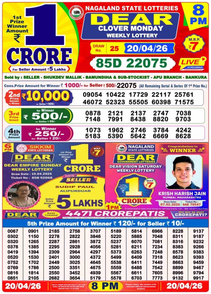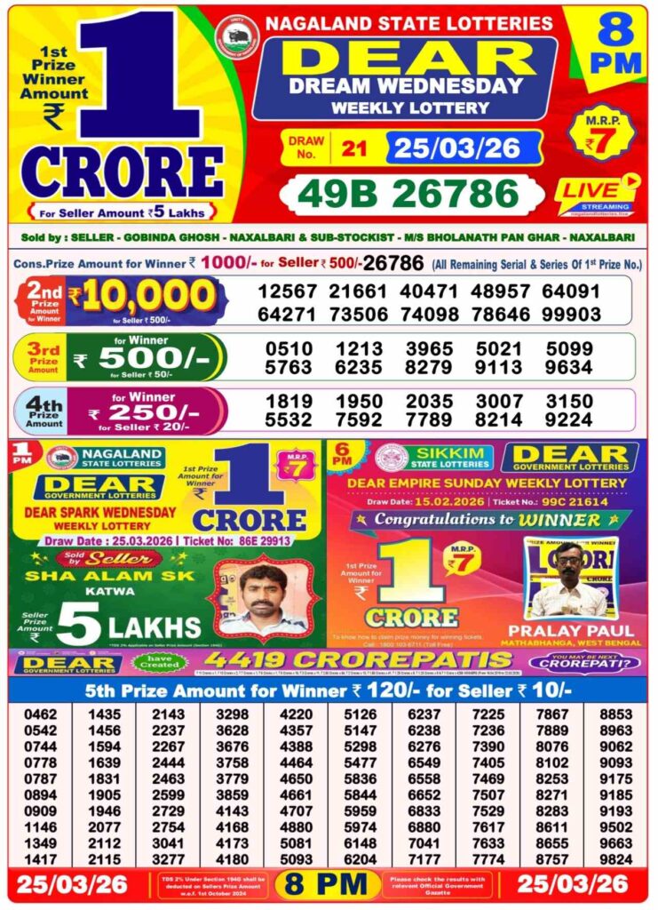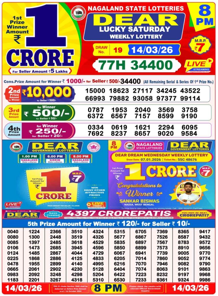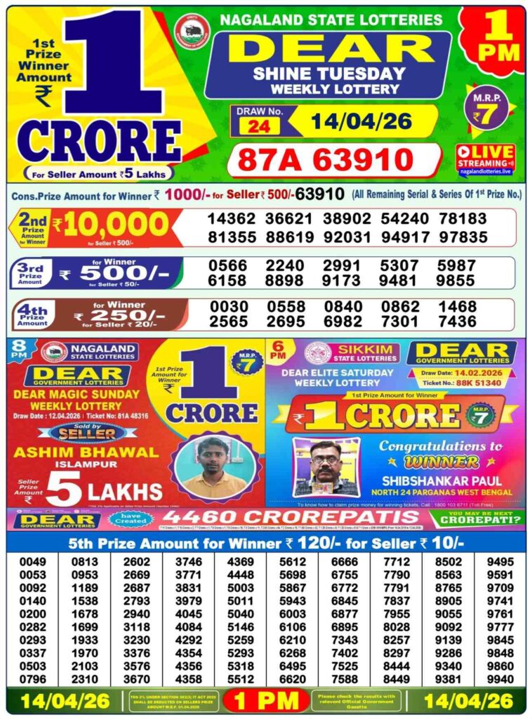 Lottery sambad Dhankesari Nagaland state lottery Sikkim state lottery West bengal state lottery Bodoland lottery result Khanpara lottery result Shillong Teer result Juwai Teer Assam Teer Result