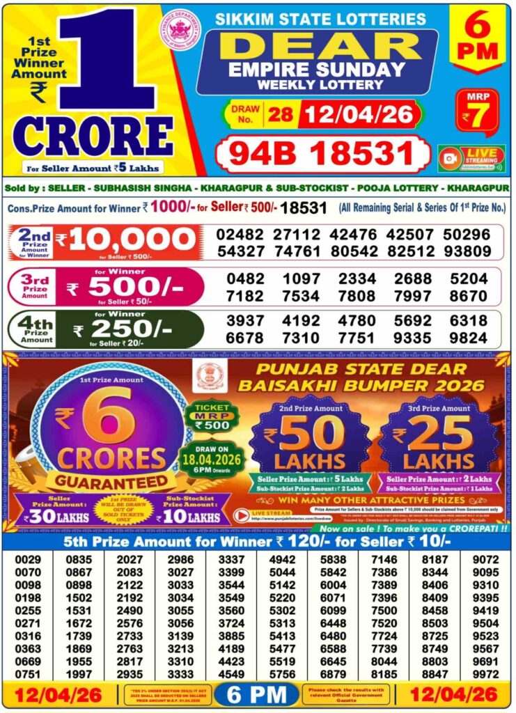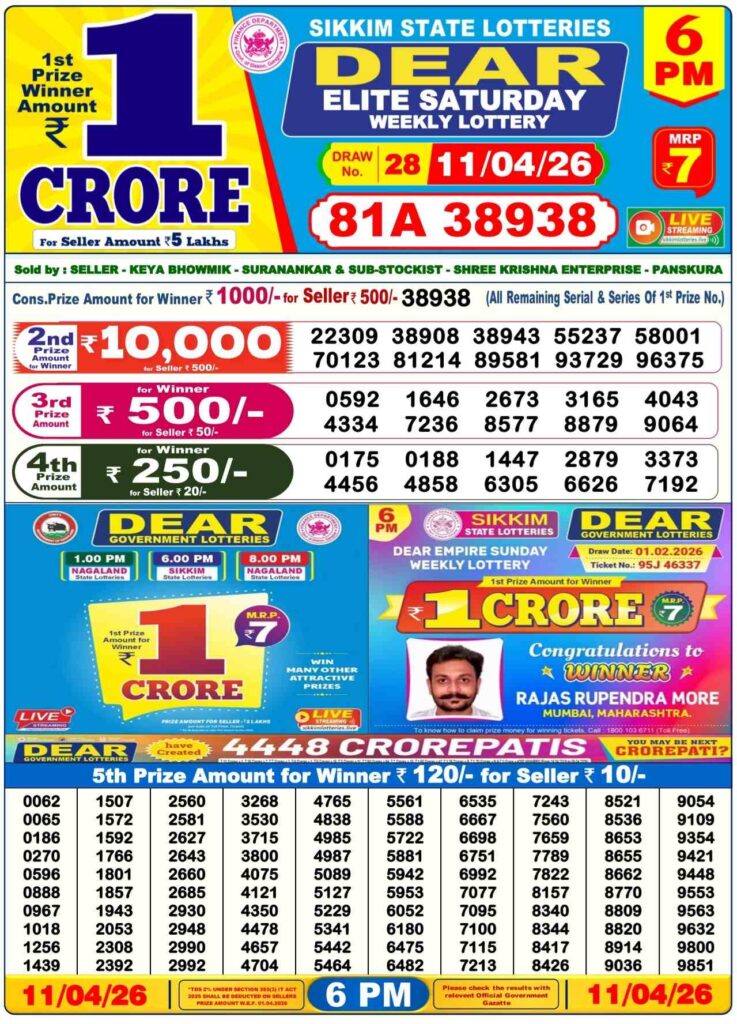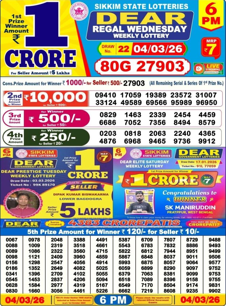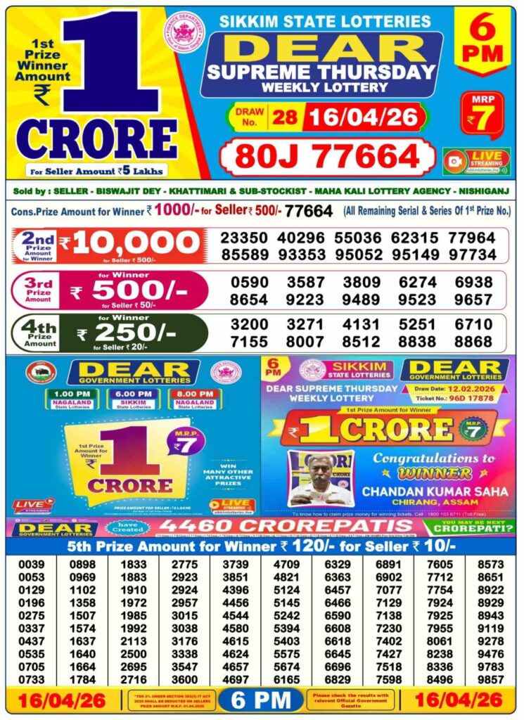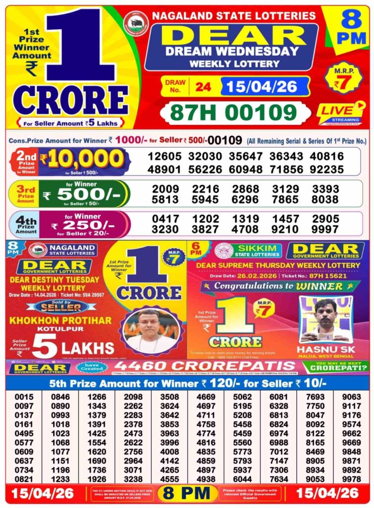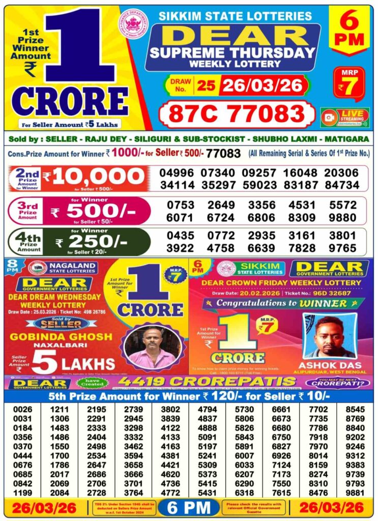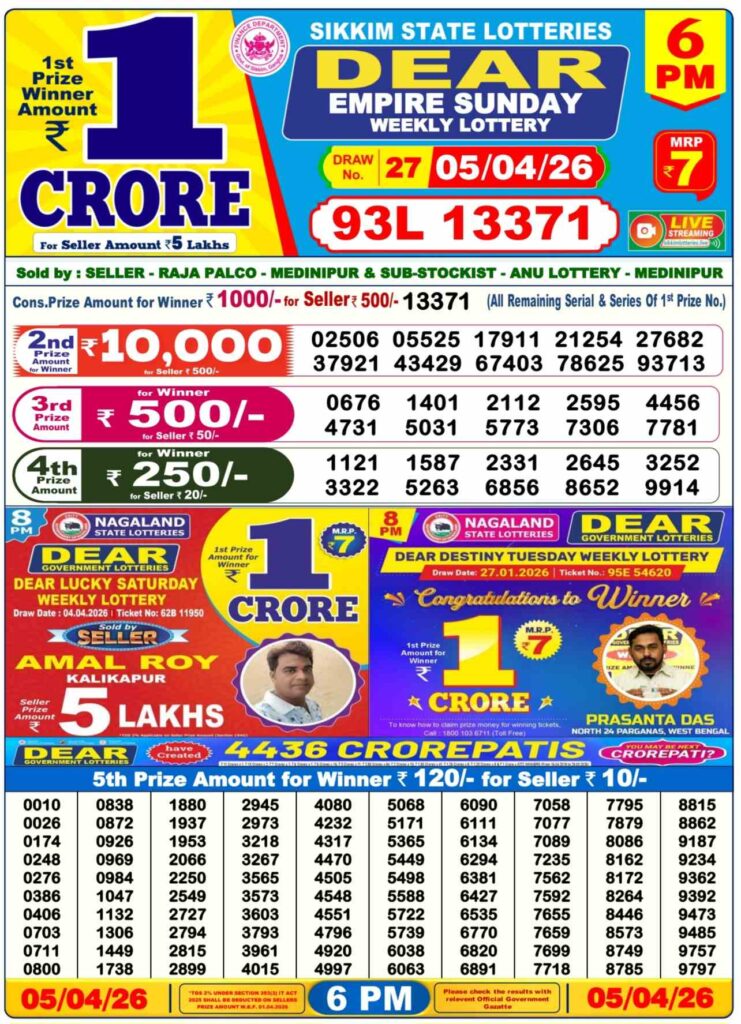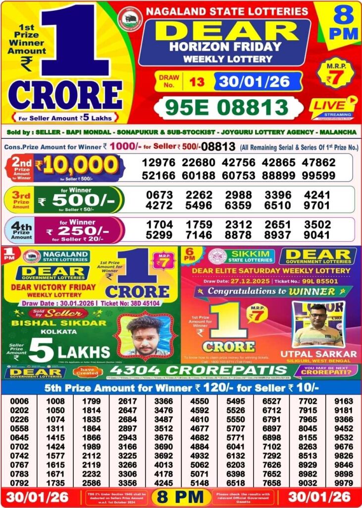 Lottery sambad Dhankesari Nagaland state lottery Sikkim state lottery West bengal state lottery Bodoland lottery result Khanpara lottery result Shillong Teer result Juwai Teer Assam Teer Result