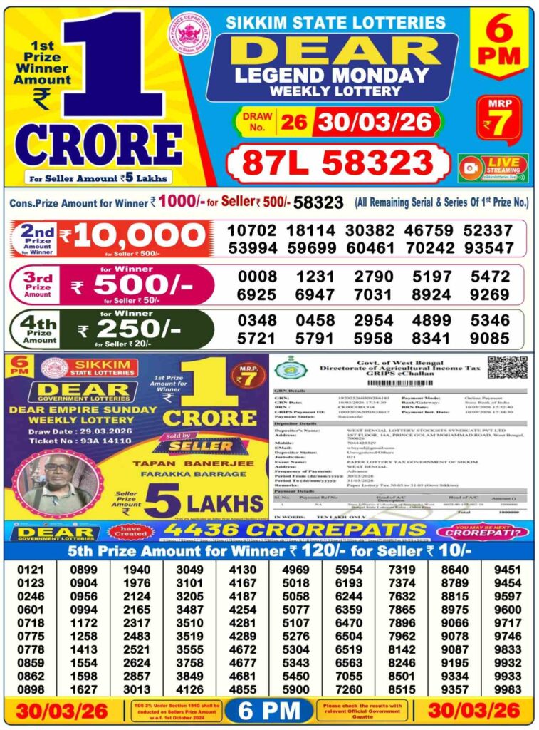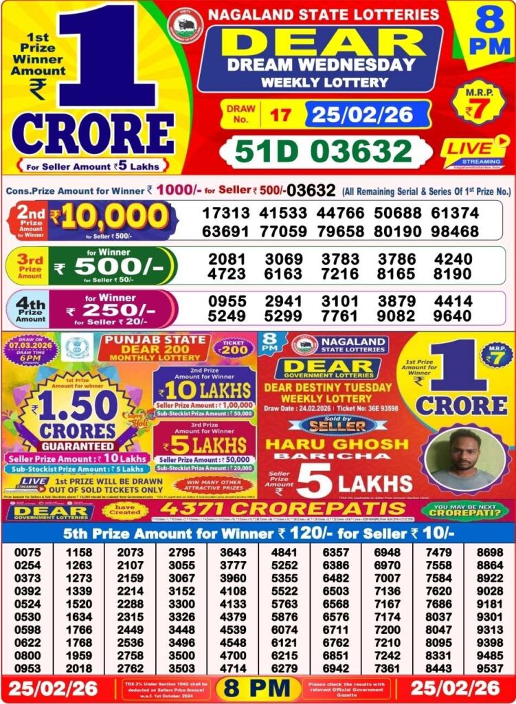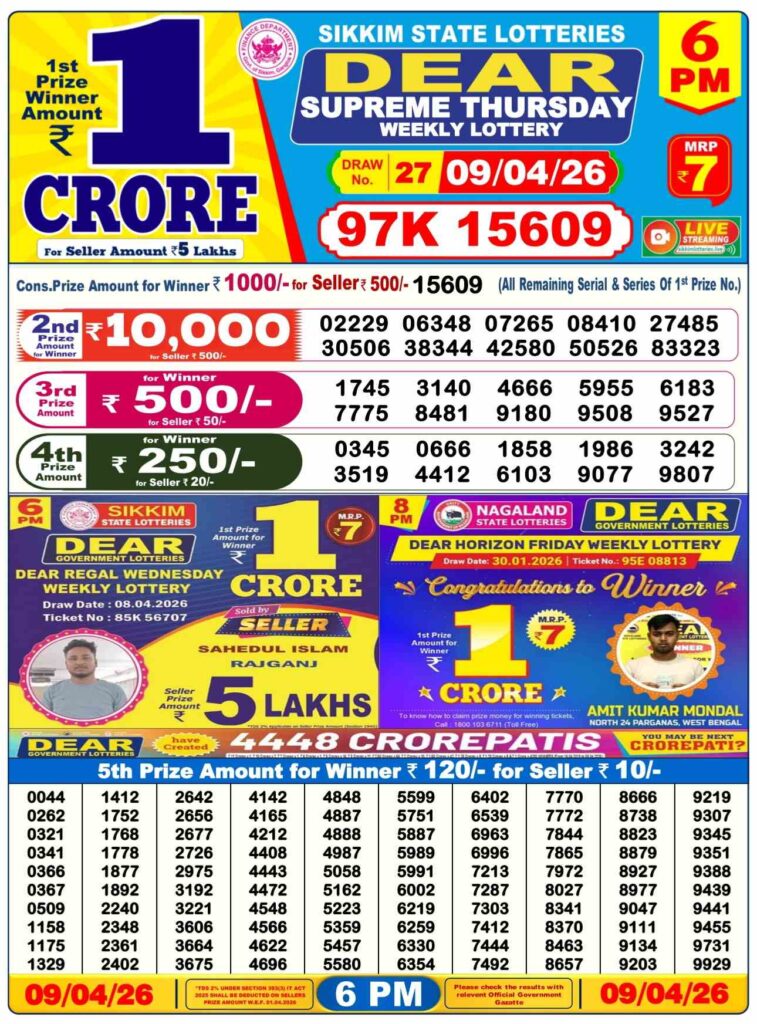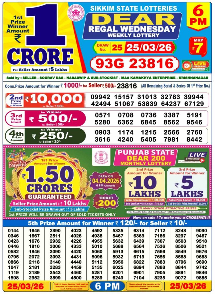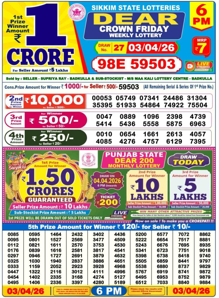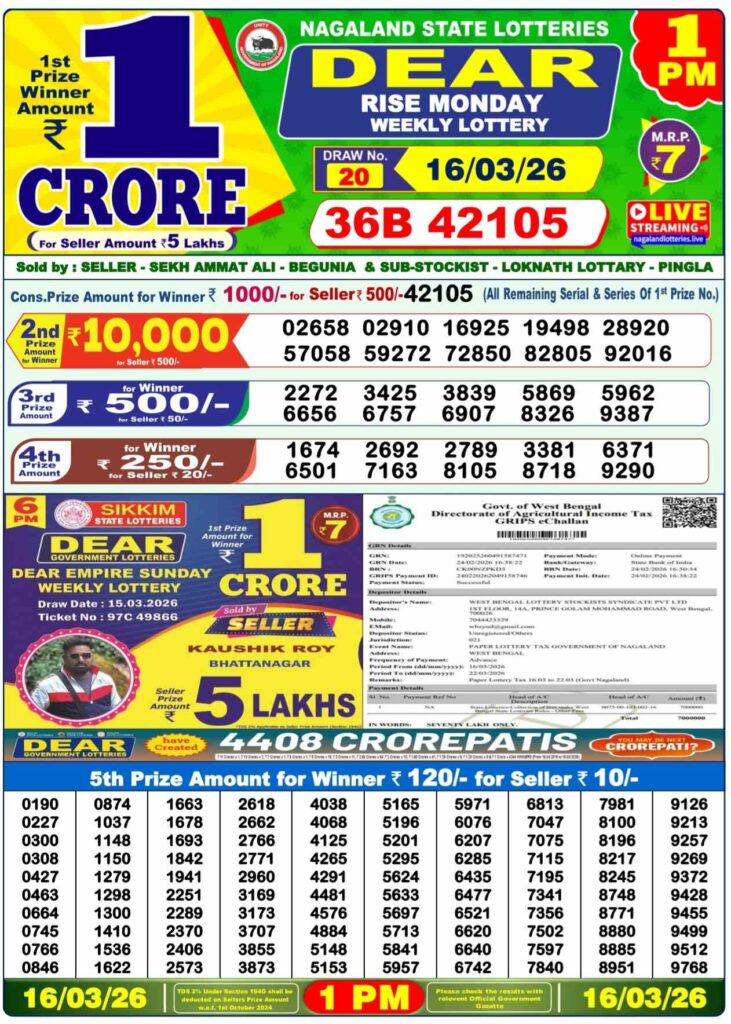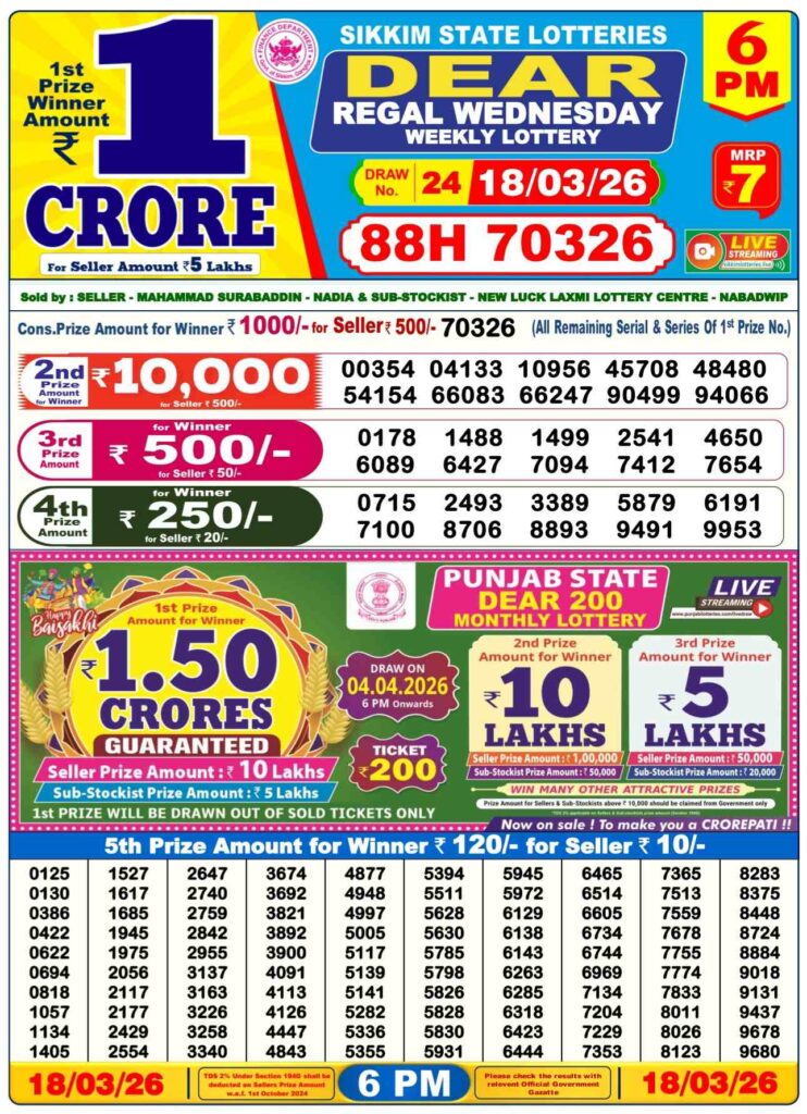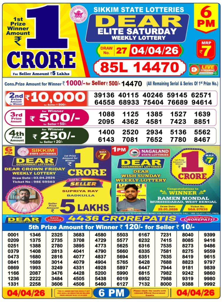 Lottery sambad Dhankesari Nagaland state lottery Sikkim state lottery West bengal state lottery Bodoland lottery result Khanpara lottery result Shillong Teer result Juwai Teer Assam Teer Result