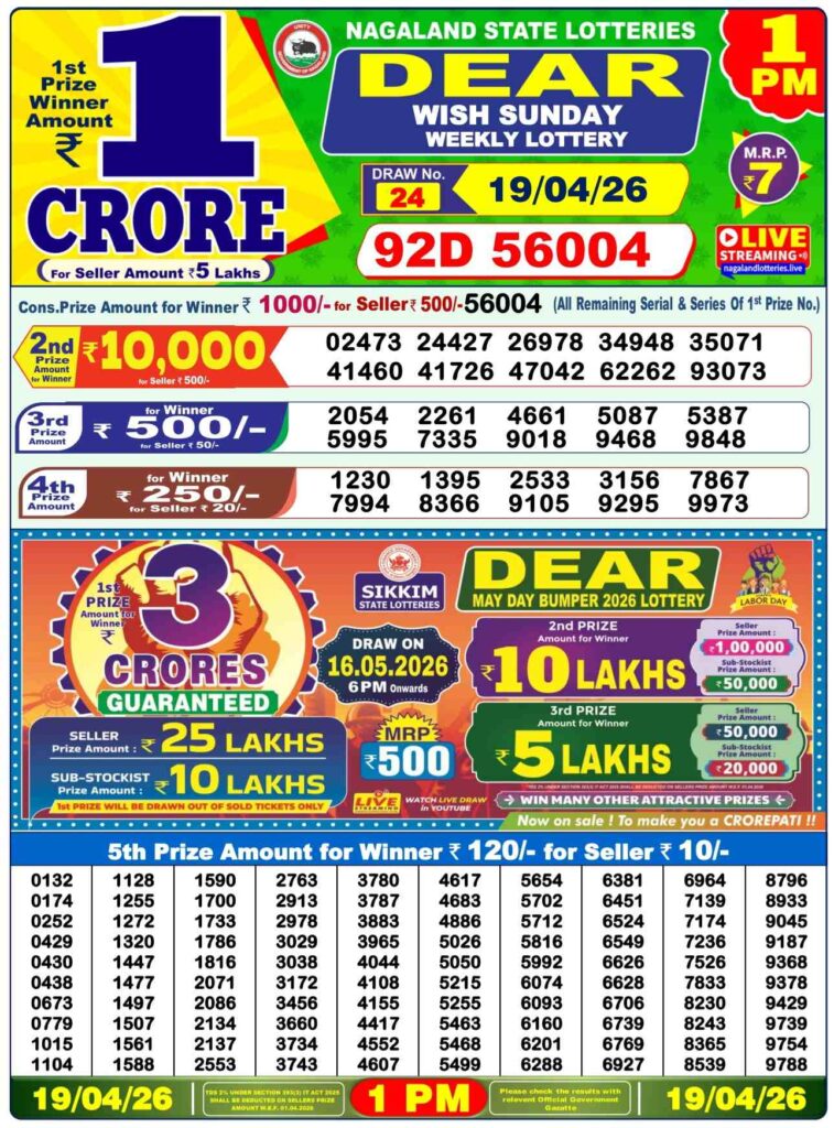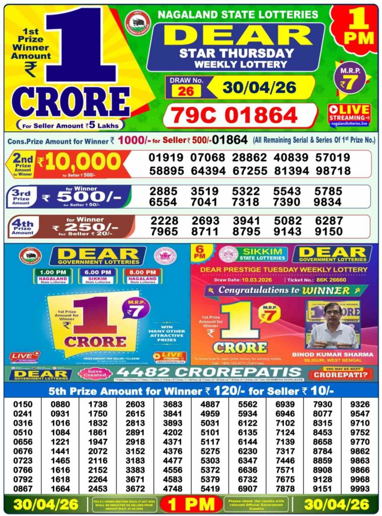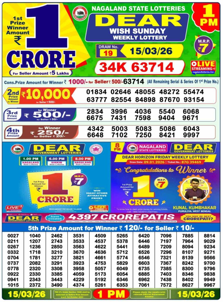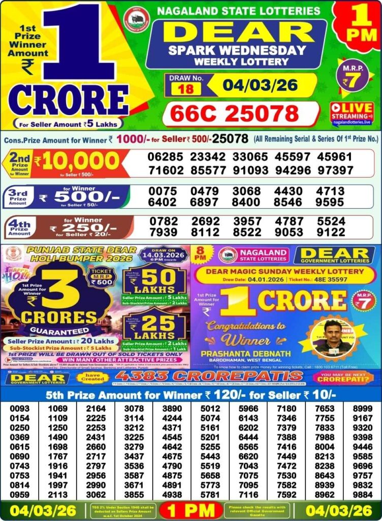 Nagaland State Lottery Result Today 1:00 PM