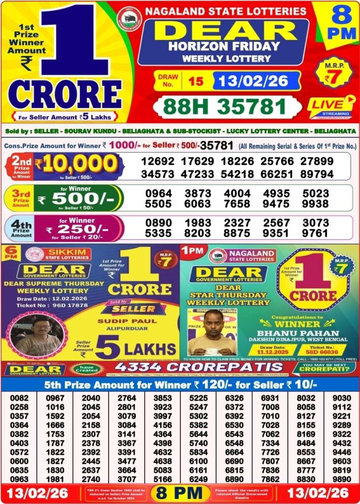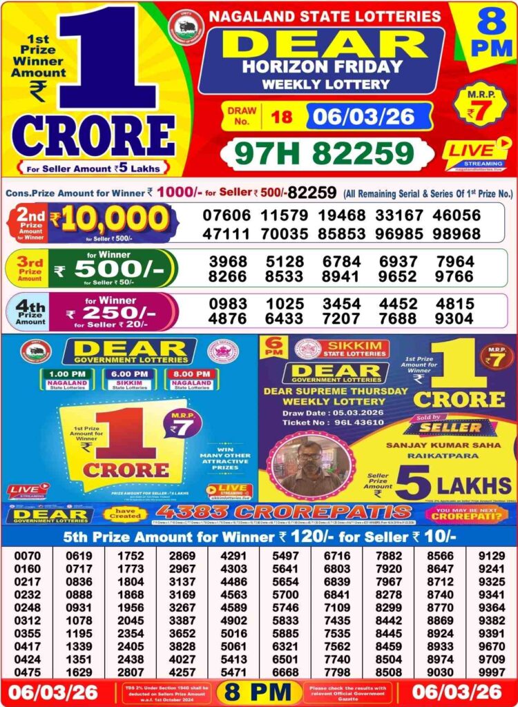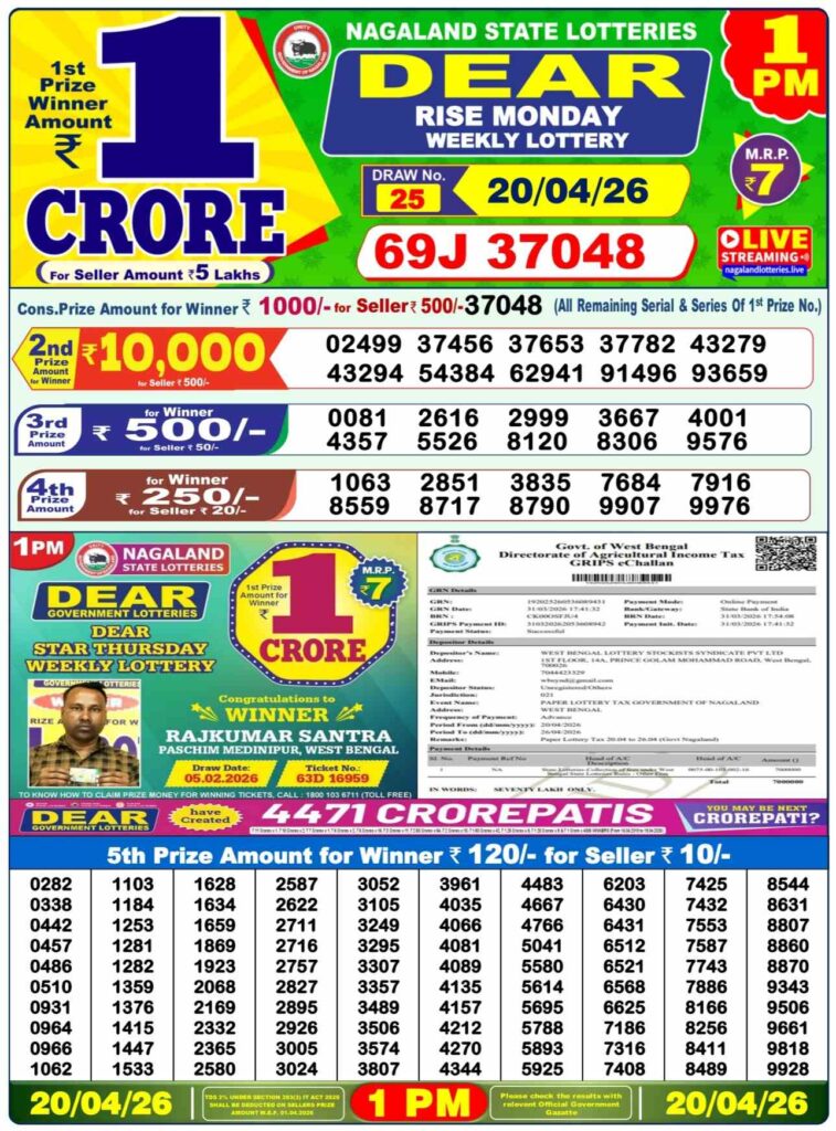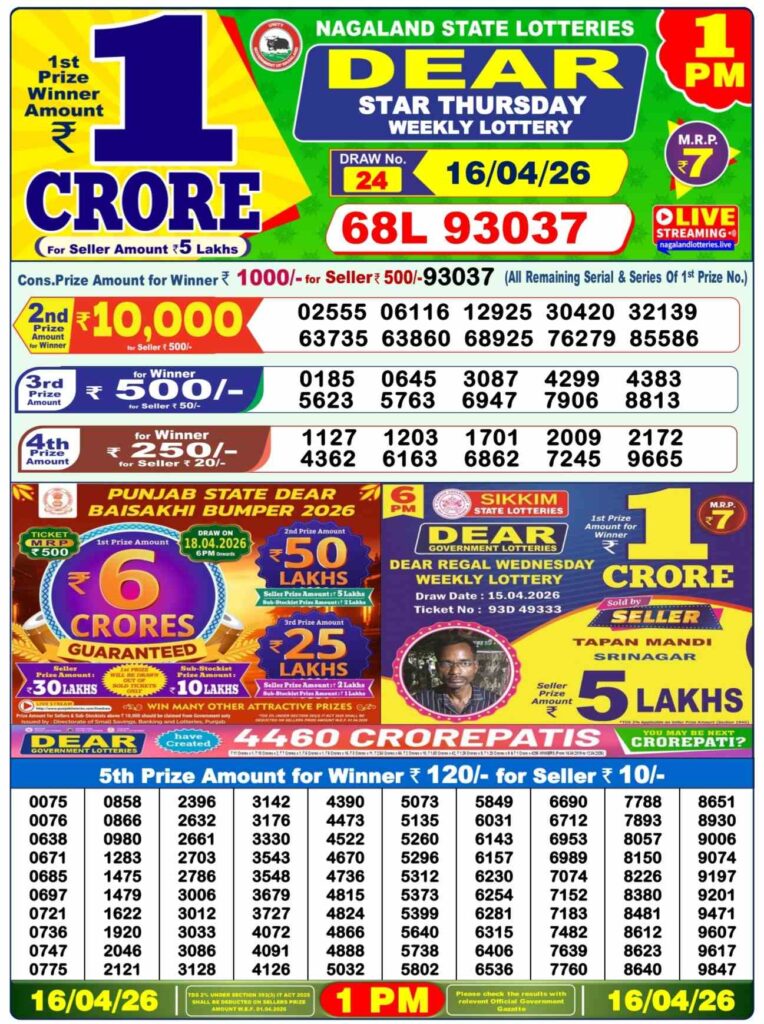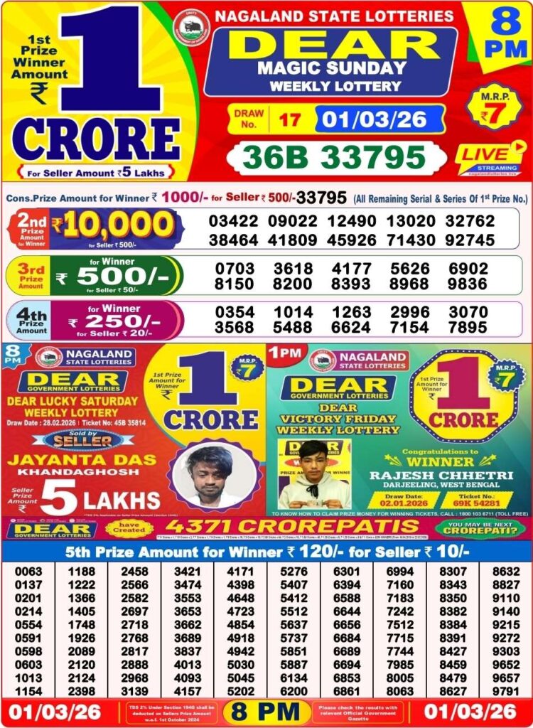 Nagaland State Lottery Result Today 1:00 PM