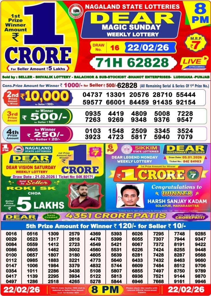 - Nagaland State Lotteries 19.7.2022 Today 1PM, 6PM and 8PM Result