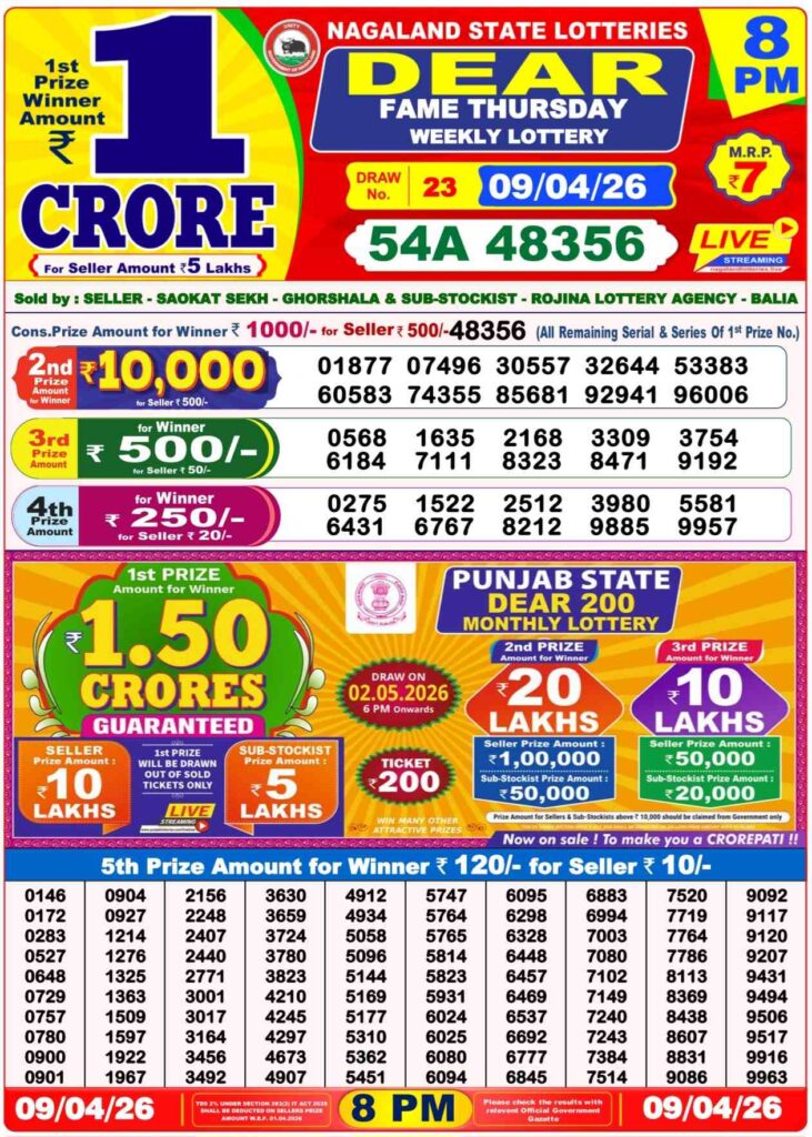 This is the day ending result of it and called as nagaland stat elotteries in under the state nagaland and very popular as lottery sambad 8pm so get ready for todays result.