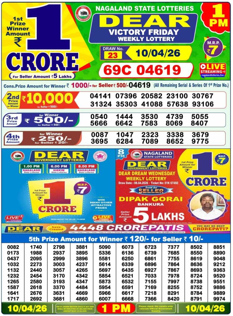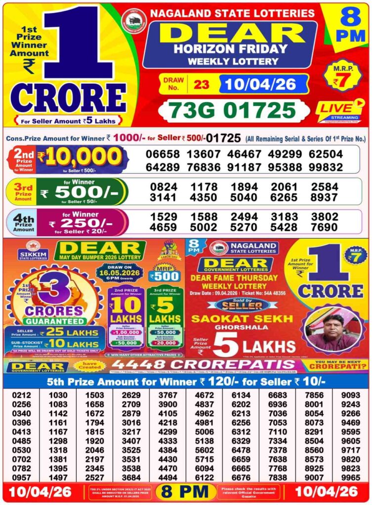 Official website here we daily post the lottery sambad results, which is known to be in bengali লটারি সংবাদ রেজাল্ট, ডেইলি ফাস্ট রেজাল্ট পেতে হলে এই ওয়েবসাইট টিকে বুকমার্ক করে রাখুন আর আমরা সবচেয়ে দ্রুত লটারী সংবাদ রেজাল্ট আপলোড করি, today is 10th April 2023 Saturday the weekends Lottery sambad old result.