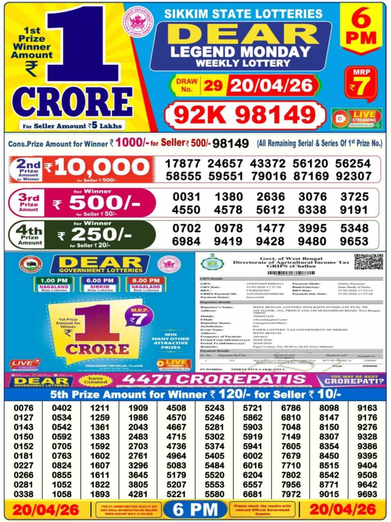 - Sikkim state lottery