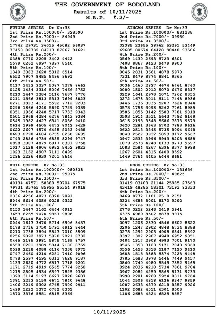 - bodoland lottery result singam kuil,