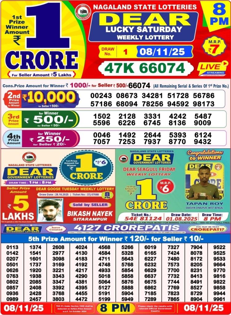 Nagaland State Lottery Sambad 9.11.2025 Today 8PM Result: There you are in this specail post is about for the daily basis of most popular Nagaland state lottery 8pm evening reuslt and friends you know that this specail post and all the other diffenret posts can be daily been updated with the most popular lottery sambad results and friends there you can win the first prize of 1 crore rupees and friends try your luck with us and friends if you needs the fastest delivery of the results then do su been craeted shortcut as site name which is lottery sambad dear and its the another great morning of Tuesday 14th of October 2025 its days lucky mornings peoles most favourte sambad lottery being greatly called to be as alwyas Nagaland state lotteries DEAR PARROT EVENING his is the most awesome 1st lottery you can say as is Bengali language লটারী সংবাদ and result will post at the best timing 8:10pm here you also get the lottery sambad live draw and the lottery sambad old result and try it daily.