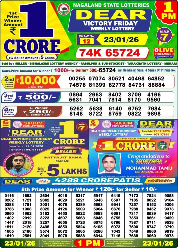| Lottery Name | Sikkim State Lottery Sambad & Nagaland State Lottery Sambad |