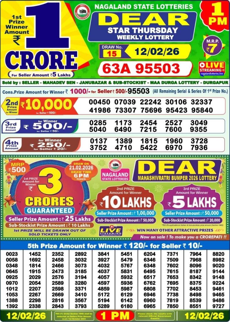 Sikkim State Lottery Result 12.2.2026 Today Live 1PM Morning Result: Good morning my dear friends there you are landed at the site which has been named to be as lottery sambad dear and dear friends you know that all the posts been updated with the lottery sambad results and there you can win the most popular prize of 1 crore rupees and friends you knwo that this special post can be udpated with the most lovely Sikkim state lottery 1pm morning reuslt and its the another day of Sunday a holiday 7th of Deccember 2025 its days peoples most favourite sambad lottery which will be alwyas been known to be as Sikkim state lotteires DEAR DAMODAR MORNING this is the most awesome 1st lottery you can say as is Bengali language লটারী সংবাদ and result will post at the best timing 1:10pm here you also get the lottery sambad live draw and the lottery sambad old result and try it daily.