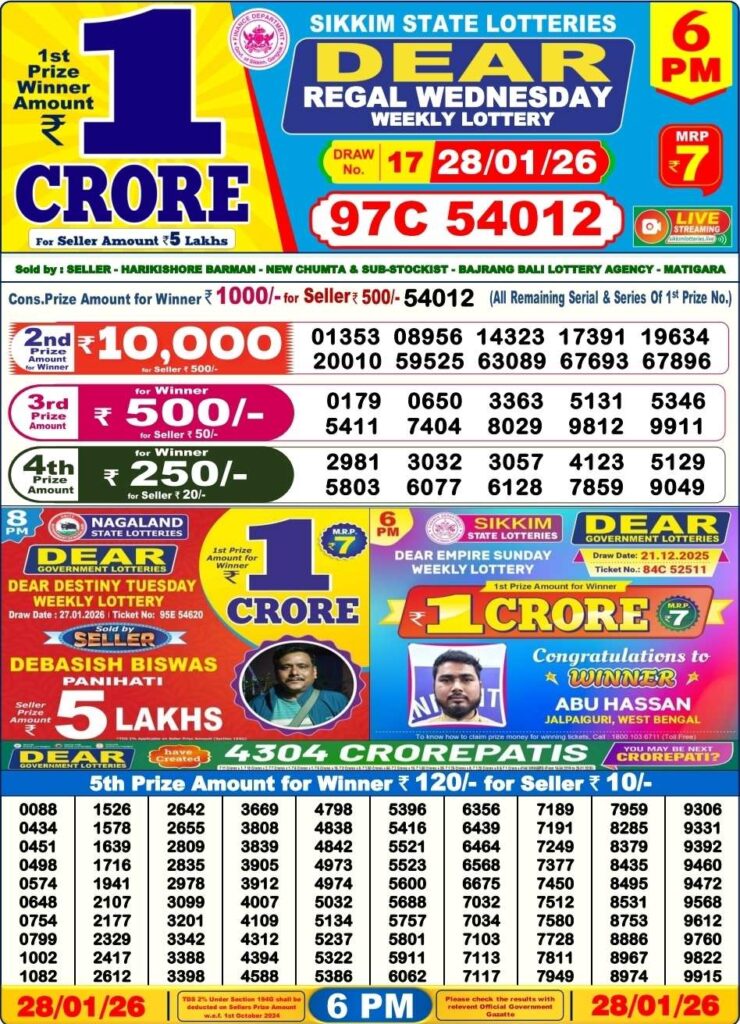 | Lottery Name | West Bengal State Lottery |
